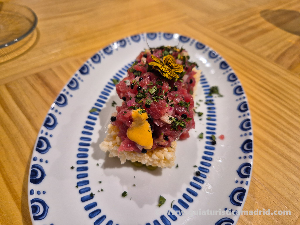 Así, que tras reservar mesa y sentarnos en su salón de arriba, hemos tenido que pedir esa famosa tortilla de patatas poco cuajada, y la verdad es que nos ha gustado, pero siempre nos quedaremos con la tortilla de Sylkar. La tortilla estaba muy buena, en su punto, pero es realmente poco cuajada, así que evitar ir a aquellos a los que no les guste ver el huevo líquido.